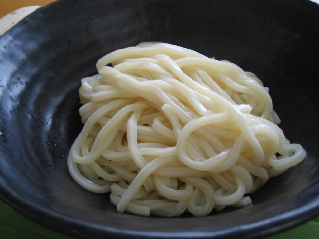 うどんをゆで上げてすぐに記念写真!